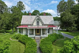 A total renovation has just been completed at this incredible property- all new kitchen, baths, paint and lighting, mini splits for A/C in the works! "The Maples" was built in 1847 by Albert Dunshee- the son of one of the founders of Bristol. It is on the historic register as the finest Gothic Revival home in Bristol.The entire residence is full of charm, elegance, & attention to detail. With 4 bedrooms & 4 1/2 baths, you and your family/guests will be quite comfortable! Large rooms-flooded w/natural light, & hardwood floors throughout. The primary suite is on the main floor, including a spacious bedroom, office/sitting room and new custom full bath. The amazing kitchen is perfect for the gourmet cook in you, with high end appliances, custom cabinetry, island with overhang for seating & fireplace w/gas insert for cozy nights! The dining room is nearby, along with two living spaces boasting amazing windows and vistas to the outside. Upstairs are three more beds/baths and office. The expansive front porch overlooks the gardens, mountain views, paths, open lawn spaces & gazebo. A large barn for storage, equipment or animals- and a workshop. The smaller barn is perfect for an ADU, set back a bit from the main residence, and prelim. soil testing proved to be favorable for an additional wastewater system/well on the property. Less than a mile to Bristol village, this property is convenient to trails, skiing, hiking, and just 10 minutes to downtown Middlebury as well!
