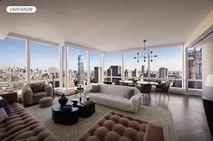 Interiors by AD100 Designer Markham Roberts Perched high above the city, Residence 45EAST at 111 Murray Street commands a half-floor position within one of Tribeca's most celebrated architectural masterpieces. This 2,821-square-foot, three-bedroom, four-and-a-half-bathroom home is a study in elegance, scale, and modern craftsmanship. Interiors by AD100 designer Markham Roberts seamlessly blend sophistication with livable warmth, framing sweeping panoramas that stretch from the Empire State Building to the Hudson and East Rivers, culminating in the vast expanse of New York Harbor. A private elevator vestibule opens to a set of grand double doors, unveiling a formal entry gallery that sets the tone for the home's impeccable flow and refinement. At its heart, a sprawling 23" x 22'3" corner great room is encased in floor-to-ceiling glass, bathing the space in ethereal natural light while capturing cinematic north- and east-facing vistas. The adjacent eat-in kitchen, equally graced with a full-height wall of windows, is both a chef's sanctuary and a social hub-its Calacatta Borghini marble island and bespoke Molteni cabinetry in cerused White Oak embodying a harmonious blend of artistry and function. State-of-the-art appliances by Wolf, Miele, and Sub-Zero complement the space, while two expansive pantries ensure effortless organization. A retreat of unparalleled tranquility, the primary suite revels in breathtaking south-facing skyline views. Featuring an opulent 12" x 7'9" dressing room with to dual en-suite baths, where travertine stone slab walls, radiant heat floors, and a custom white marble vanity create a spa-like sanctuary. A freestanding BluStone soaking tub is positioned to capture the glow of the cityscape through an expansive picture window, offering a moment of serenity above the urban fray. Two additional bedroom suites, including a luminous southeast-corner retreat, are each appointed with en-suite marble baths. A powder room, utility room with vented washer and dryer, and separate service entrance complete this extraordinary home. 111 Murray Street stands as a beacon of architectural excellence in Downtown Manhattan, conceived through an extraordinary collaboration between Kohn Pedersen Fox, David Mann, David Rockwell, and Edmund Hollander. Rising 800 feet into the Tribeca skyline, its sculptural crystalline fa ade flares gracefully to a luminous peak, reshaping the city's architectural vocabulary. Residents enjoy over 20,000 square feet of private amenities spanning two levels, including a state-of-the-art wellness suite with a heated stone hammam, sauna, and treatment rooms, a 3,000-square-foot fitness center, two pools, a private dining suite with a demonstration kitchen, and exquisitely landscaped gardens that seamlessly integrate indoor and outdoor living. Positioned in the heart of Tribeca, surrounded by world-renowned dining, boutiques, and cultural institutions, this rare offering is a testament to the art of modern luxury living.