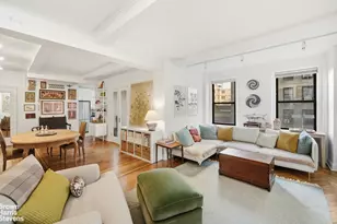 Spacious and bright two bedroom prewar condo that combines classic Upper West Side charm with a smart, loft-like layout. Enter into an expansive dining area which flows seamlessly to the very large living room, creating an airy, flexible great-room setting ideal for both everyday living and entertaining. The updated windowed kitchen has great storage and stainless steels appliances, and is perfectly situated adjacent to the dining space. A sizable and bright corner primary bedroom offers excellent storage and both East and North facing windows, while the second bedroom is ideal as a guest room, den, or library. A renovated, windowed bathroom is perfectly situated between the primary bedroom and living space. Additional features of this lovely home include almost 1,100 sqft of space, beautiful herringbone wood floors, 9 foot ceilings, and good storage space. 124 West 93rd Street is a boutique pre-war condominium on a picturesque, tree-lined block just one short block from Central Park. The building offers a part-time doorman (4pm-12am), live-in superintendent, bike room, and a shared garden. Please note that there is a capital assessment of $314.80/mo. through December 2026.