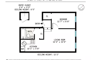--Only One Flight Up! --Beautiful and Quiet Tree-Lined UWS Street. --Dishwasher and Washer/Dryer Allowed With Board Approval. --1/2 a Block From the Express Train. --12 Ft. High Ceilings. Make your home on a quintessential tree-lined block in this lovely Upper West Side one-bedroom, one-bathroom co-op featuring spacious interiors, great storage, and incredibly low monthly maintenance, just a block-and-a-half from Central Park. Inside this charming home, ceilings soar more than 12 feet high above extra-tall windows, ceiling fans, original hardwood floors and exposed brick. A large entry closet welcomes you into the raised foyer, while below, the living room provides a generous footprint for seating and dining areas surrounded by northern exposures and sky-high ceilings trimmed with wood. The efficient kitchen is filled with white cabinetry and appliances, while the adjacent closet is perfect for pantry storage. The bedroom accommodates a queen-size bed and desk area and includes its own closet with abundant overhead space, ensuring storage will never be a concern. A full bathroom with a large/tub shower and roomy vanity cabinet completes this delightful co-op with potential. Built in 1882 by A.B. Ogden & Son, 132 West 71st Street sits among a row of beautiful Neo-Grec rowhouses with dramatic Queen Anne elements. Today, this three-building cooperative offers part-time maintenance staff. Pets, pieds-á-terre, co-purchasing, gifting and subletting are permitted with board approval. From this Upper West Side/Central Park West Historic District location, you're just minutes from Central Park's most beloved destinations, including Strawberry Fields, The Lake, Bow Bridge and Bethesda Terrace. This prime neighborhood is surrounded by the city's best gourmet stores, including the original Fairway Market, Gourmet Garage, Trader Joe's, Citarella and more. Enjoy easy access to fantastic restaurants, nightlife and Lincoln Center entertainment and a wealth of transportation options, including B, C and 1/2/3 subway lines, excellent bus service and CitiBike stations all nearby.