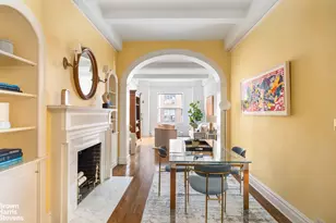 Unique 3-Bedroom Pre-War COOP in Carnegie Hill 1349 Lexington Avenue, Apartment 2F A spacious and meticulously designed 3-bedroom, 2 bath in the coveted Carnegie Hill blends elegance, craftsmanship, and modern convenience in a well-maintained, pet-friendly building. A wide entry hall greets you with gracious arches flowing seamlessly into the expansive living and dining areas with ceilings over 10'. The custom millwork throughout enhances the home's character, while floor-to-ceiling built-in cabinetry and shelving provide abundant storage and style. The renovated eat-in kitchen includes a large window bathing the space in natural light. Double cabinets extend to the ceiling - ideal for maximizing storage-and a Miele washer/dryer (vented to the outside) is discreetly enclosed for convenience. A built-in dining nook adds charm and function, perfect for casual meals or small gatherings. The cherry-paneled library offers a rich, inviting ambiance for quiet reflection. The wet bar and built-in ice maker make it an ideal setting for relaxation. The heart of the home is the open dining and living area, which includes a wood-burning fireplace and grand arches emphasizing the home's unique pre-war qualities. For added comfort the home is equipped with thru-wall air-conditioning. The primary suite is a serene retreat, featuring a sleek green lacquer wall finish, generous cedar closet, and windowed bathroom with a built-in heated towel warmer. Two additional bedrooms are equipped with custom floor-to-ceiling closets for ample storage. The beautifully appointed second bathroom features a cast-iron tub, modern shower fixtures, and elegant finishes. Building amenities include a roof garden, courtyard, playroom and bike room. The apartment comes with a private storage locker. There is also a live-in resident manager to ensure the building is well-maintained with a full-time staff and 24/7 doormen. Located in one of Manhattan's most desirable neighborhoods, this residence presents a unique opportunity to enjoy refined living with unparalleled convenience. No Flip Tax.
