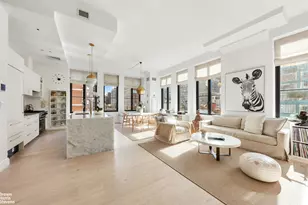 This gorgeous sun-filled corner loft with Montauk beach house vibes offers a sprawling 3BR layout and superb luxury finishes throughout. Enter to a dramatic Living/Dining room wrapped in south/east light with 12-foot ceilings, bleached wide-plank oak floors and unobstructed city views from numerous oversized windows. The striking chef's kitchen with center-island is open to the entertaining space and features sleek marble countertops, abundant custom cabinetry and top-of-the-line Viking, SubZero and Fisher Paykel appliances. Beyond the living room, you'll find a bright guest room that easily converts to a library or home office. Nearby, a private hallway leads to two light-filled bedrooms and two tastefully renovated bathrooms. The king-sized primary bedroom suite is a pin-drop quiet sanctuary replete with a separate sitting area, gorgeous 5-fixture bathroom and an enormous fitted walk-in closet with enough shelving and hanging space to satisfy any fashionista. The secondary bedroom is equally bright and offers a large fitted wardrobe and more spectacular views. Every inch of this immaculate home has been carefully considered with the utmost luxury and comfort in mind. Additional amenities include central air-conditioning, custom lighting on dimmers, a washer-dryer and a tasteful powder room for guests. All this, in a premier full-service condominium with 24 Hour doorman, full-time superintendent, gym, playroom, bike room, private storage and an impressive common roof terrace with panoramic city and river views. And of course, there's the prime location, putting you right in the heart of Tribeca's historic district with great restaurants, shopping, green parks, highly rated schools and all major subway lines right at your doorstep.