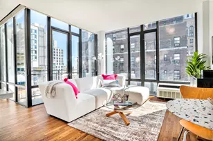 Situated on the southeast corner of the building, this ultra chic and very cool one bedroom/one bathroom penthouse is sun-drenched through floor-to-ceiling windows and 9-foot ceilings. The living space provides ample room for living and dining and has a charming open kitchen complete with custom white lacquer cabinetry, Quartz stone countertops, stainless steel appliances by Fisher Paykel and Frigidaire, and a mobile island perfect for additional counter space and storage. The bedroom comfortably fits a queen bed and side tables, as well as room for a dresser and desk, and has a generously proportioned closet. The designer bath has a deep soaking tub with shower combo and oversized rain shower, custom walnut vanity and modern Vasser fixtures. Additional features include newly refinished oak floors, custom blinds, thru-wall AC, an additional hall closet, and your very own balcony. Last but not least washers and dryers are permitted in unit. Located in the nexus of Gramercy Park, Flatiron, and Nomad, sits One48, a luxury, full-service condominium built in 2009 with 14 stories and 55 units. Living at 148 East 24th Street means boutique living with amenities including 24hr attended lobby, a live-in Super, an on-site automated parking garage, in-house gym, media room, bike storage, and a gorgeous, landscaped roof deck equipped with two grills for the best of outdoor dining and entertaining. Just a short walk to Madison Square Park, wonderful restaurants, shopping, and all forms of public transportation, it's downtown living at its finest. Please note there is an assessment of $320/mo. in place thru 01/31/26 for boiler replacement, and that the Real Estate Taxes shown are abated 17.5% for primary users.