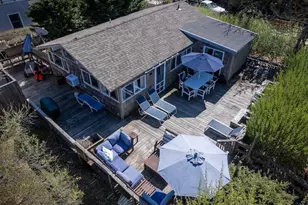A Dunewood classic in a prime location. This classic Dunewood home sits on a spacious corner lot, just one house off the bay. Surrounded by greenery, it offers a sense of privacy while keeping you close to the action. It is just steps from the Dunewood Bay Beach, ferry dock, and yacht club. Inside, the open layout with vaulted ceilings is filled with natural light. There are three bedrooms and 1.5 bathrooms, including a primary bedroom with its own half bath and sliding doors that open to the deck. Decks wrap around the house, creating a practical extension of the living space. There's plenty of room for outdoor furniture, whether you're setting up a dining table, lounge chairs, or both. It's a flexible space that works well for quiet mornings or casual gatherings. A large outdoor shower adds convenience after a day at the beach. As a Dunewood homeowner, you'll have exclusive access to the community tennis courts. Don't miss this one. Schedule your showing today.