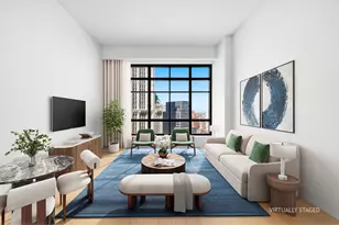 High-Floor, Park-Facing Two-Bedroom Residence with Breathtaking Views Perched on a high floor and offering magnificent park-facing views over historic City Hall Park, this meticulously designed 1,117 SF two-bedroom, two-bath home features wide plank Italian oak flooring, oversized casement windows, and refined 9" decorative moldings. The open-concept kitchen boasts a cantilevered island with custom white lacquer cabinetry and shelving, complemented by Calacatta Gold marble countertops and backsplash. Top-of-the-line appliances-including a panelized Miele refrigerator/freezer, dishwasher, and U-Line wine refrigerator-ensure seamless functionality. A four-burner Miele gas cooktop with a vented hood, speed oven, and full-size oven complete this chef's dream kitchen. A washer and dryer add further convenience. The serene primary suite features a generous walk-in closet and a spa-like en-suite bath adorned with Calacatta Gold marble vanity top and wainscoting. A custom European white oak vanity, Kallista polished nickel fixtures, and radiant heated floors provide an added touch of luxury. Residents enjoy access to the exclusive Park Row Club, overlooking City Hall Park. This exquisitely appointed amenity space includes a reading room, library with a fireplace, private dining room, golf simulator, billiards room, 65" swimming pool, fitness center with yoga and meditation studio, spa treatment room, and children's play suite. Outdoor amenities feature the Garden and Dining Terrace, complete with a great lawn, trellised dining area, an outdoor living room and a playscape. Experience elevated living and unobstructed park views from this exceptional high-floor residence.