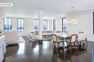Super Rare Tribeca 250 West Street 4-5 bedroom with river views! Apartment 9A is a very rare Northwest corner home with stunning river views and extraordinary sunsets! This gorgeous 4+ bedroom and 4 and half bath home spans 4100 square feet. The living room alone is over 750 square feet and boasts 7 over-sized arched windows. Its soaring ceilings are nearly 10 feet, which enhances the loft like feeling in this true Great Room. The stunning all white Poggenpohl kitchen has lacquer cabinetry, quartz counter tops, double wall ovens, Sub-Zero refrigerator and imported glass-tiled backsplash and offers plenty of storage, plus an exterior venting exhaust. It can either be open to the Great Room or closed off by beautiful sliding bronze doors. The massive river facing primary suite has an enormous dressing room/walk in closet which leads to a spa-like marble bath with double sinks, separate shower and 6" soaking tub. Down the private wing corridor, you will find a gorgeous Den/Library/5th bedroom. Further, you will find 3 additional generous bedrooms with en suite baths and a spacious playroom with a separate entrance and mudroom/stroller storage. A large separate laundry room is conveniently located in this wing. 2 DEDICATED AND BUILT OUT STORAGE ROOMS ALSO TRANSFER WITH THIS HOME, AND THEY ARE LOCATED ON THE SAME FLOOR AS THE APT! This stunning "smart" home has automated sheers and black out shades as well as an integrated speaker system, 3- zone central Heat and AC, and countless fully outfitted closets throughout the apartment. In the heart of TriBeCa's landmark historic district is 250 West Street built in 1906 and transformed into a unique collection of luxury condominium residences. Unparalleled amenities include a magnificent lobby with separate library lounge, a beautifully designed 61-foot pool, a two-level state-of-the-art fitness center and a delightful playroom. To complete this amenity package, 250 West offers a 5000 sq ft common roof terrace with panoramic views, sundeck, lounge and dining area. Across the street is Hudson River Park's new Piers 25 and 26 with playground, miniature golf course, beach volleyball courts and more.