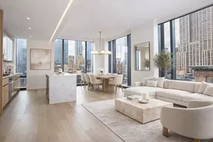 AVAILABLE JULY 1st Residence 21A is a beautifully proportioned corner two-bedroom spanning approximately 1,343 square feet, offering open north and west exposures and an exceptional sense of light throughout the day. Designed by renowned architect Rafael Viñoly, with interiors by Jeffrey Beers International, the home blends modern architecture with a warm, refined material palette. Floor-to-ceiling windows wrap the living spaces, creating a dynamic interplay of light and structure while framing open city views. Ceiling heights exceed ten feet, enhancing the overall volume and allowing for both comfortable living and thoughtful art placement. Natural wood tones and stone finishes add depth and sophistication across the residence. The kitchen is designed with both functionality and aesthetics in mind, featuring custom pale oak cabinetry paired with metal-trimmed glass uppers and elegant Calacatta marble surfaces. A full suite of high-end Miele appliances is seamlessly integrated, including a refrigerator and freezer, wine cooler, gas cooktop with vented hood, convection and speed ovens, and dishwasher and Washer and Dryer. The primary bedroom suite offers a calm, private retreat with a spacious dressing area and a windowed en-suite bathroom. The bath is finished in San Nicola marble with radiant heated floors, custom walnut vanities, and premium fixtures by Kohler and Dornbracht. The secondary bathroom is equally well appointed, featuring Bianco Dolomiti marble, heated flooring, and refined detailing throughout. Residents enjoy access to a thoughtfully designed amenity collection spanning two levels. These include a library-style lobby with dramatic double-height shelving, a private dining and entertainment suite with catering kitchen, a fully equipped fitness center opening onto a landscaped terrace, as well as dedicated lounges and a children's playroom. PHOTOS ARE VIRTUALLY STAGED. A rare opportunity to lease a highly designed corner residence in a full-service, amenity-driven building. Security Deposits : $13,950 Application & Move-In Fees: Application Processing Fee: $700 Digital Document Retention Fee: $112.50 Move-In Deposit: $1,000 Move-In Fee: $500 Consumer Report Fee: $75 Optional: Expedited Review Processing Fee: $500 (optional, 1-2 business day review not include board review).