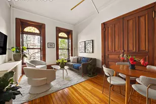 Come home to a stunning parlor floor, two bedroom brownstone with abundant original details and its own private landscaped backyard. Located a half block from Prospect Park on a quintessential tree-lined street on Garfield Place, this classic Park Slope home features exquisite woodwork, original pocket doors and shutters, 10'10" soaring ceilings, hardwood floors, and crown molding throughout. The living room has enormous windows with arched stained glass, a decorative fireplace with a beautiful original marble mantel and gorgeous parlor doors. The open kitchen has stainless steel appliances, an under-counter washer and dryer, D/W and abundant cabinet and counter space. Down the hall, complete with built-in bookshelves, leads you to two serene bedrooms. One features a decorative fireplace with an original carved wood mantel, a storage loft and two over-sized south-facing windows. The primary bedroom can fit a queen or king sized bed, has southern and western exposures, walnut built-ins and a lovely vanity area with sink. Enjoy entertaining and relaxing both indoors in the parlor level and outdoors in your own idyllic backyard. 292 Garfield Place is a self-managed 4 unit co-op with storage for each apartment in the basement along with a common laundry area. Pets upon board approval. Zoned for PS 321. Located in the heart of Park Slope, just one block from Prospect Park and moments to Grand Army Plaza, weekend farmers market, Brooklyn Public Library, Brooklyn Botanical Garden, Brooklyn Museum, the 2, 3, B, and Q trains, and all the neighborhood's vibrant offerings.