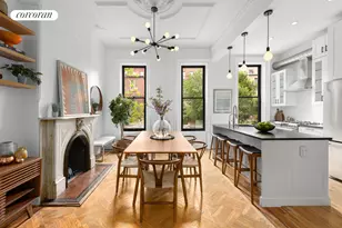 Built in 1901 and masterfully reimagined for modern living, 292 Putnam Avenue is a rare offering that blends meticulous historic preservation with luxurious contemporary upgrades. Located on a quiet, tree-lined stretch of Putnam Avenue between Nostrand and Marcy Avenues, this grand three-story, two-family brownstone offers 4 bedrooms, 3 full bathrooms, and an unparalleled level of detail and craftsmanship throughout. Every inch of this home has been thoughtfully updated while honoring its architectural roots. The exterior's original character gives way to a beautifully restored interior, featuring refinished floors, a mahogany staircase, ornate plaster trim, Carrara marble fireplace surrounds, brass fittings, and functional antique service bells-all lovingly preserved or restored. The entire home has been repainted from top to bottom, with plaster work completed throughout, and most interior doors and frames have been replaced for a refined, cohesive look. Step into the parlor-level duplex through a newly retiled foyer and be greeted by soaring 10-foot ceilings and oversized windows that flood the space with natural light. The formal living room is anchored by an original decorative limestone fireplace, setting the tone for gracious entertaining. Pocket doors lead to a spacious dining area that flows effortlessly into the chef's kitchen-completely transformed by removing a rear wall to create an open-concept layout. The kitchen features high-end Caf appliances, custom wood cabinetry, gleaming granite countertops, a large central island, and an Aquasana water filtration system. A brand-new Bosch 500 Series dishwasher (installed in 2024) ensures modern convenience. Upstairs, the second floor features two generously sized, sun-filled bedrooms and two beautifully gut-renovated bathrooms. The serene primary suite is anchored by a restored decorative fireplace and includes a spa-like en-suite bath with a refinished antique clawfoot tub-perfect for unwinding at the end of the day. The second bedroom overlooks the peaceful rear garden, offering a quiet retreat. Both bedrooms are connected by a customized walk-through closet system, providing ample storage and seamless functionality. The second bathroom is equally luxurious, showcasing a glass-enclosed shower and thoughtfully selected fixtures from Signature Hardware and Schoolhouse, enhancing the elevated design throughout. The garden level, accessible via an interior staircase, has been completely reimagined with a full reconfiguration. The back bedroom now features exposed original brick, new French doors, and larger windows that bring in abundant natural light. A brand-new bathroom, along with new appliances and fixtures throughout, makes this two-bedroom unit ideal as an income-producing apartment or in-law suite. The hallway has been refinished with fresh paint, plaster, and recessed lighting, while custom white oak stairs connect the garden level to the parlor above. The basement is newly finished with ceramic tile flooring, double fire-rated sheetrock walls, and a full French drain and sump pump system-along with waterproofed masonry walls that have remained completely dry, even during the heaviest rains. A new washer/dryer and updated utility systems make this space as functional as it is clean. Additional upgrades include: Custom Pella Architectural Series wood windows (Low-E, double-pane, sound-blocking, 2025) New 75-gallon water heater with 10-year warranty (2025) Refinished extension roof with black asphalt coating (warranty through 2032) Roof hatch replaced with a heavy-duty steel model and vented skylight Outdoor teak decking and planters added in 2024 Backyard extensively groomed, with old structures removed and planters installed Lighting, plumbing, and electrical systems updated throughout the home Stair risers from parlor to second floor replaced Lead paint remediation and full repainting with zero-VOC encapsulant (2023). Located just moments from neig