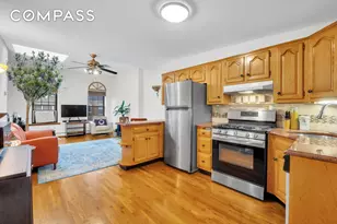 Welcome to 294 Smith Street, Apt. 3, an affordable and charming 2-bedroom, 1-bathroom floor-through condo located in the heart of prime Carroll Gardens. Only two flights up, this 977 sq. ft. top-floor unit offers a bright, airy living space with three exposures and a skylight that fills the home with natural light. Key highlights: -Light & Space: The apartment boasts abundant natural light from oversized windows and a skylight. -Kitchen: The open kitchen features a dishwasher, stainless steel stove and refrigerator, and a breakfast bar overlooking the living room that provides ample space for a dining area and a home office nook. -Bedrooms: The serene primary bedroom is located at the back of the apartment, offering a peaceful retreat with double closets and western-facing windows that provide lovely views of lush treetops and surrounding neighborhood homes. The second bedroom, with a large northern-facing window, also has its own closet and nice natural light. -Bathroom: The bathroom is attractively tiled and includes a ceiling vent. -Additional Features: The apartment boasts a sloped 9+ ft. ceiling, which adds to the sense of space, and has gleaming hardwood floors throughout. It also has its own boiler and circulating hot water heating system, along with 220 outlets for A/C in the bedrooms and living room for maximum comfort. -Building: This well-maintained, self-managed condo building has only three units, making for a quiet and intimate living environment. The common charges are exceptionally low at just $250 per month and there is a commercial space on the ground floor. -Neighborhood: Situated in the heart of Carroll Gardens, this condo is conveniently close to the best local amenities, including vibrant restaurants, shops, and cafés along Smith Street and Court Street. Enjoy Carroll Park, Carroll Playground, and a year-round farmer's market. You're also just minutes away from BoCoCa, Gowanus, and the F/G subway lines at Carroll and Bergen Streets. 294 Smith Street combines the best of prime Brooklyn living with an affordable price, ideal for those who appreciate the dynamic energy of Carroll Gardens and the tranquility of a bright, spacious home. (video tour available upon request)
