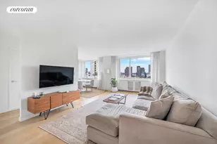 Gorgeous 2-bedroom 2-bathroom residence at Fifty Third and Eighth Condominium, conveniently located 5 blocks from Columbus Circle in one of Manhattan's most vibrant neighborhoods. This bright and airy corner unit offers an efficient and generously proportioned layout, spanning 1,039 SF with natural light flooding through the expansive southern and western exposures. The highly-sought after A-line opens into an oversized and sun-drenched dining and living room, complete with 5 white oak flooring throughout. The full size kitchen comes equipped with white lacquer cabinetry with white quartz countertops with breakfast bar, Bosch appliances throughout, including refrigerator, Bertazonni oven with gas cooktop and dishwasher plus stainless steel microwave and garbage disposal. The split configuration features a spacious primary bedroom with ample closets, en-suite bathroom and western exposure, while the second bedroom has a sun-drenched south exposure. The bathrooms are outfitted with custom vanity and cabinet, Glassos tile flooring, Toto toilet and Kohler fixtures throughout. Apartment also features a Bosch washer and dryer en-suite. Located between the eccentric neighborhoods of Hell's Kitchen and Midtown West, Fifty Third and Eighth Condominium, located at 301 West 53rd Street, is a rare and unique new development conversion with interiors by BP Architects and furnishings by ASH NYC. This lively area is world-renowned for its wide range of shopping, dining, entertainment and celebrated attractions including Central Park, MoMA and the Theater District. Building amenities and features include a 24-hour doorman and concierge, state-of-the-art fitness center and spa, common roof terrace with Barbecue and lounge, in addition to valet dry cleaning, cold storage, bike storage and on-site parking. Some photos virtually staged.