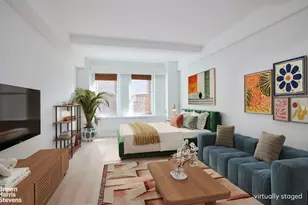 Lovely Studio in The Master Building Welcome home to this bright and airy studio apartment, perched up high on the 15th floor! This charming home features high ceilings, brand new wood floors in the living room, an open kitchen with ample cabinet space, and a full-size refrigerator. The bathroom has original subway tiles with deep soaking tub. This apartment also has ample closet space, with both an entry closet and walk-in closet. This apartment makes an ideal starter home or a pied-a-terre. The historic landmark, The Master Building, is located on a residential tree lined block at West 103rd Street and Riverside Park, central to a vibrant Upper West Side community. This Art Deco building featuring 24-hour doorman, full-time resident manager, central laundry room, and grand lobby hosting special events and art exhibits for residents. Bike storage and storage units are available in the building for rent. Live in prime Upper West Side, near Riverside Park, Columbia University, world class restaurants, and cultural events. Sublets are permitted with a board approval. The coop allows pieds-a-terre, gifts, co-purchasing, and guarantors There is an ongoing capital contribution of $44.19. Note: some images have been virtually staged.