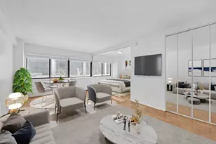 Welcome to this bright and airy high-floor alcove studio, featuring a stunning 20-foot expanse of windows that showcase the Norman Foster-designed Hearst Tower. This charming space includes a new air conditioning unit, ample closet storage, hardwood flooring, and a fully renovated bathroom equipped with a large vanity and glass tub enclosure. The updated kitchen boasts an LG microwave, LG refrigerator, dishwasher, and gas range, with the potential to easily convert the layout into a one-bedroom. 310 West 56th Street, a mid-century co-op built in 1964, has beautifully renovated hallways adorned in a tasteful shade of grey. Residents enjoy access to a Bike Room and Private Storage on the service level, as well as a modern laundry room. With an exceptional staff including a live-in superintendent, 24-hour doorman, and maintenance personnel, this building offers one of New York's most desirable locations. It is pet and pied-a-terre friendly, and permits parents purchasing for children, gifting, foreign ownership, and subletting. Situated in the vibrant Columbus Circle neighborhood, 310 West 56th Street is surrounded by iconic landmarks such as Carnegie Hall, Central Park, the Hearst Building, Nordstrom, Lincoln Center, and the Time-Warner Center, along with some of the finest dining options in the city. With eight subway lines within a two-block radius, transportation is incredibly convenient. Truly exceptional!