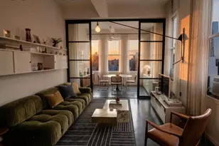 Residence 17A at Kheel Tower is a spacious flex two bedroom loft with beautiful sunset views and open skyline outlooks from oversized west and north facing windows. With soaring ceilings and classic pre war proportions, the home blends authentic loft character with thoughtful modern upgrades throughout. A long entry gallery with generous storage leads into a dramatic living room framed by nine large windows that fill the space with natural light during the day and capture striking sunset views in the evening. Windows on both the west and north exposures create a bright, airy feel rarely found in loft apartments. The living room has been thoughtfully enhanced with custom floor to ceiling sliding glass doors, creating a flexible second bedroom, dining room, home office, or media area while keeping the main living space open and spacious. The apartment has been extensively upgraded. Ceiling heights were raised to maximize volume and light. The kitchen was fully renovated with new appliances and modern finishes. The bathroom was redesigned with a large walk in double sized shower. Throughout the home there are 11 CitiQuiet soundproof windows, creating a calm interior environment above the energy of Chelsea. Storage has also been thoughtfully improved with a custom walk in wardrobe featuring an Elfa system in the primary bedroom, an Elfa system in the hallway closet, and the addition of a triple hallway closet. The hallway closet doors are being upgraded to with custom sleek gloss white sliding doors. The apartment was recently fully painted, including the walls, ceilings, and floors. 315 Seventh Avenue, known as Kheel Tower, is a historic 1926 loft condominium known for its distinctive Gothic and Art Deco architecture and classic New York loft scale. The building offers a live in superintendent, video intercom, part time doorman concierge, and multiple laundry rooms. Located across from FIT and directly above the 1 train at 28th Street, you are moments from Whole Foods, Trader Joe's, the Flower District, Madison Square Park, Hudson Yards, the High Line, and some of Chelsea's best restaurants, cafes, and shopping. A rare opportunity to own a flexible loft with character, sunset views, and exceptional convenience in the heart of Chelsea. * virtually staged furniture