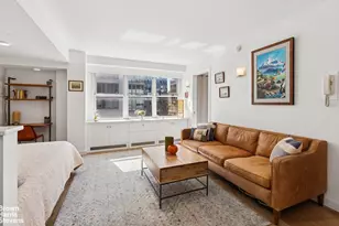 Perfect Pied-à-Terre Sun-filled corner studio with sweeping south and west city views-ideal for watching the sunset. Thoughtfully redesigned and fully renovated, this residence features a windowed open kitchen with dining bar, a spa-like windowed bathroom with marble finishes, soaking tub, and premium fixtures, plus abundant storage. The living area is enhanced by French Oak floors throughout, custom built-ins, a walk-in and a utility closet. Building Amenities - 24-hour doorman and live-in superintendent with attentive staff - Newly renovated lobby, hallways, package/mail rooms, and laundry facilities - On-site garage, bike room, and storage - Pet-friendly (2 dogs up to 40lbs each) - Co-purchases and pied-à-terres permitted - Subletting allowed after two years (up to four years) Neighborhood Highlights Centrally located with easy access to transportation, three nearby parks, vibrant nightlife, top dining, and every convenience.
