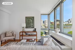 Welcome to #5D - A Bright and Spacious One-Bedroom Home with Northwestern Views of the Manhattan skyline and the East River. This charming one-bedroom, one-bathroom residence at Riverwalk Landing maximizes space and comfort. Recently refreshed, this unit now boasts all new stainless steel appliances, contemporary lighting fixtures, sleek countertops, brand new flooring, and a fresh coat of paint throughout. With tax abatement in place-fully abated through June 30, 2027, with a gradual phase-in of 20% per year until expiration in 2031/2032-this is a rare opportunity to own a premium home with long-term savings. There is a $188/month assessment for the months of 2025. As you step inside, a well-appointed kitchen with full-size stainless steel appliances greets you on the left, while a spacious entry closet sits conveniently on the right. The open-concept living and dining area is framed by striking corner floor-to-ceiling windows, bathing the space in natural light and offering breathtaking views of the Manhattan skyline and the East River. The bedroom easily accommodates a bed, dresser, and a cozy seating or work area, providing both functionality and flexibility. The well-designed bathroom features a washer/dryer with additional storage above, enhancing everyday convenience. This is a rare chance to purchase from the sponsor, The Hudson Companies and The Related Companies, in a highly sought-after location. Riverwalk Landing offers easy access to the F-train subway, Roosevelt Island gondola, Citibike stations, and NYC ferry, connecting you seamlessly to the city. Don't miss out on this opportunity to own or invest in a premium condominium with spectacular views. Images are of a similar unit and may not represent all apartment features.