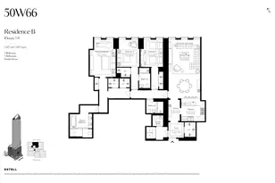 Residence 8B is a gracious 2,427 square-foot, 3- bedroom 3.5-bath home in the House collection at 50 West 66th Street, with up to 10'-6" ceiling heights. Designed by Shamir Shah, The House Collection at 50 West 66th Street taps into the classic pre-war elegance of the Upper West Side. These homes feature gracious living spaces, and the finest finishes throughout, including Smallbone of Devizes custom-designed and crafted kitchens, Miele and Sub-Zero appliances, 8-inch oak flooring, strikingly appointed marble baths, generous closet space and a vented washer and dryer. Available for immediate Occupancy. 50 West 66th Street, is one of the most important residential buildings on the Upper West Side and has transformed the New York City Skyline. Extell's newest tower has 121 ultra-luxury homes ranging from two bedrooms to full floors. The building boasts 50,000 square feet of amenity space including both an indoor and outdoor pool, squash court, full-sized basketball and pickleball court, state-of-the-art fitness center, Sky Lounge for entertaining and a private porte cochére. The complete offering terms are in an offering plan available from Sponsor. File No. CD-18 0494. Equal Housing Opportunity.