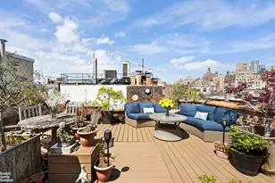 Terrace Lovers" Dream This one-of-a-kind duplex one-bedroom, two-bathroom (convertible two-bedroom) penthouse offers a stunning private roof deck and is tucked inside a charming, intimate elevator building in the heart of the Upper West Side. The home blends character and comfort with exposed brick and hardwood floors. A renovated open-plan kitchen with sleek finishes and a dishwasher makes cooking and entertaining easy and enjoyable. Northern and eastern exposures bring in great natural light throughout the day. The tree-top, townhouse garden views are quiet, serene, and bucolic. A spiral staircase leads upstairs to the bedroom, which fits a king-sized bed and end tables, and a peaceful full bathroom, with access to the show-stopping landscaped private roof deck. A second full bathroom on the main level adds convenience and flexibility. The spacious roof terrace offers sweeping city views perfect for morning coffee, dining al fresco at sunset, or stargazing at night. The space is inviting and flexible, with the ability to create a second bedroom. Located just half a block from Central Park, this well-maintained elevator building, with laundry in the basement, places you moments from the B/C and 1 trains, top-rated restaurants, shopping, and cultural landmarks. Sorry, no dogs. This special home is full of charm, light, and character-your own private escape in the heart of the Upper West Side.