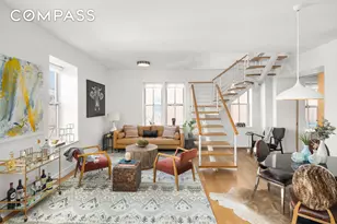 This Bank Street, one-of-a-kind, corner duplex with high ceilings boasts almost 1,500sf of sunny living and entertaining space, surrounded by 15 large windows. The defining element of this West Village loft-like home is its impressive custom steel and white oak floating staircase. An engineering feat that was fabricated onsite. Configured as a 2 bedroom, 2 bathroom, with either bedroom being the primary, an additional powder room can easily be added, depending on your needs. A row of closets greet you upon entering creating an abundance of storage. The open windowed chef's kitchen boasts floor to ceiling Irpinia cabinets, extensive storage, an extra wide island with waterfall countertop, stainless steel appliances including Wolf range and hood, Bosch dishwasher, Liebherr fridge/freezer and a wine cooler. The dining area and living room are ideal for large parties and are surrounded by windows and is adjacent to the kitchen. There is a newly renovated en suite bath in the downstairs primary bedroom, and a large walk-in closet. This home offers significant wall space for art and the new wide plank white oak engineered floors that enhance the space. A nook by the staircase is perfect for a desk and you will find recessed lighting throughout this home. Walking up the floating staircase you get a wonderful sense of the distinctive architecture with the 20-foot ceiling height and new glass wall partition. The upper level is awash in light, open and airy. Nestled in the Greenwich Village Historic District, it overlooks Abingdon Square Park and has views of the Empire State Building in the distance. This floor is currently used as an open bedroom double windowed sitting / office area and a fully renovated bath and large walk-in closet, as well as a second entrance. Perfectly situated on Bank and Hudson, 99 Bank Street was designed by D&J Jardine for Peter M. Wilson and built in 1890. Known as the Ross Building. Prior to its conversion to a residential building, it was a warehouse, showroom and sales training center for the General Electric Company. Amenities include a part-time doorperson (4pm-12am, 7 days a week), live-in super, full-time porter, recently renovated central laundry and bike storage. The building recently installed new elevators and is in the process of a full renovation of the lobby and intercom systems as well as the hallways. This vibrant neighborhood offers a wealth of local conveniences and attractions. Residents can enjoy the picturesque High-Line Park, Little Island and Hudson River Park, renowned for its scenic bike and running paths, as well as an array of engaging activities including tennis and kayaking. Nearby, the esteemed Whitney Museum beckons with its cultural allure.The nearby Meatpacking District presents a plethora of shopping and dining options. With its dynamic blend of natural beauty, cultural landmarks, and urban delights, this neighborhood is a captivating tapestry of experiences waiting to be explored.
