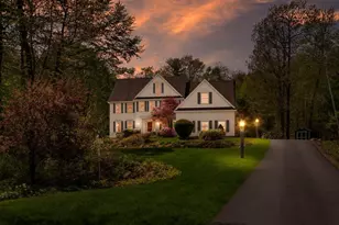 Welcome Home. Set on 2.6 peaceful acres, this 4-bedroom, 4-bathroom Colonial with a 3-car garage perfectly captures New England charm. A newly paved driveway with granite posts welcomes you to this warm and inviting home. Inside, you'll find a bright and open floor plan with natural light throughout. The large kitchen features stainless steel appliances, ample cabinetry, generous counter space, and a fun green tile backsplash. It opens directly into the vaulted-ceiling family room with tall windows and an Italian pellet stove, creating the perfect gathering space. A front-to-back living room offers even more space to relax or entertain, and the first-floor office adds flexibility for remote work or study. Upstairs includes four spacious bedrooms and a convenient second-floor laundry room. The primary suite features a refreshed bathroom. All bedrooms are light-filled and well-sized. The walkout basement is full of opportunities offering great natural light, a full bath, kids cave, space for a gym, guest space, or recreation area. Outside, enjoy the private backyard with a patio, garden space, and room to add a pool. Wildlife and peaceful views make this home feel like a retreat while still being close to everything you need.Location in top-rated school system, Riddle Brook, upscale shopping and walking trails.