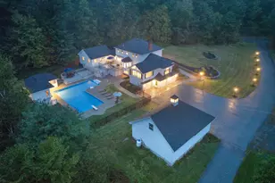 This exceptional custom-built home is a masterpiece of craftsmanship, originally designed and constructed by and for the builder himself, w/ nothing spared for quality & design. As you approach the long driveway lined by charming lamp posts, you'll be immediately struck by the beauty of the home, set gracefully back from the road. The portico entryway evokes a sense of luxury, offering a grand and inviting first impression. Upon entering the spacious eat-in kitchen you'll find a charming breakfast nook that floods the space with natural light and offers lovely views of the backyard paradise. Off the kitchen is a formal dining room & a spacious living room featuring cathedral ceilings and an adjoining bright and inviting sunroom. 6+ generously sized BR's and 5 baths, including a FIRST-FLOOR PRIMARY SUITE. The finished walk-out basement offers a perfect space for a home theater, gym, & recreational area. The home also includes a 1-BR IN-LAW apartment with 2 separate entryways and a patio, providing privacy and comfort for extended family or guests. 5+ GARAGE SPACES, ensuring ample space for vehicles and storage. The oversized in-ground pool, cabana, multi-level decks & built in fire-pit create an inviting oasis for relaxation and fun. Set on 4 acres, with conservation land as it's backdrop and close to RT. 93 & 495, this property offers convenient access to local amenities while maintaining a peaceful, secluded ambiance. Don't miss the opportunity to make this dream home yours!