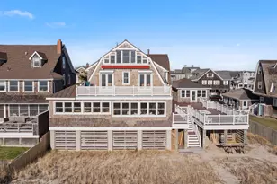 Experience beachside living in a fully-renovated and unusually expansive Dutch colonial with a matching guest cottage on exclusive East Avenue. Ownership rights encompass the 75 feet of beach fronting the property, as well as riparian rights extending 600 feet into the water. Ideally located to the center of town, this thoughtfully curated home offers over 5,000 square feet of Victorian-era charm accented throughout with elegant modern finishes. A wheelchair-accessible elevator provides access to the driveway, main and second levels. The main level features sweeping ocean views from the living area and from the state-of-the-art chef's kitchen equipped with: commercial-grade appliances; molded concrete counters that indistinguishably mimic wood and stone; a 48'' wide double-faucet sink with incorporated drainboards; an island with prep sink; custom cherry-wood cabinetry; and an ample peninsula/breakfast bar. The open, extensive living and dining areas provide spacious accommodation and an incorporated sound system for entertaining an abundance of family and friends. Off of the main floor, a massive Trex deck bridging the main house and cottage offers sumptuous views of and access to the beach and ocean, and includes its own incorporated outdoor sound system and natural gas service for your grill. The second floor has six bedrooms and three full baths. Both east facing bedrooms feature Andersen French doors - with roll-down security shutters - that open onto a sizeable deck with unobstructed panoramic beach and ocean views. Three of the remaining bedrooms open onto the west deck, ideal for catching the afternoon sun. Both decks are newly re-surfaced with fiberglass and fresh gel coats. The third floor owner's suite has stunning ocean views, handcrafted built-in dressers, and a luxurious five piece en suite bath. Additional amenities include: the charming guest cottage with kitchen, laundry, another full bath, incorporated sound system, and finishes that match the main house; a two-car garage; brand new cedar shake siding on all three structures; and heavy gauge, imperishable copper roofing, all of which heighten the value of this exceptionally rare property. Rinse off from your swim in the outside shower on the beach. There is additional off-street parking for at least five cars.