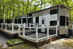 Your own little slice of heaven in this 2019 Salem Grand Villa 42' destination trailer. Simplicity coupled with serenity can be a dangerously successful combination. The Salem Villa Destination Trailers are built and furnished like a fine home to offer you a home away from home. This trailer and campsite have been Meticulously maintained. Spacious Master bedroom with queen bed and slide out. Living area features entertainment center, electric fireplace w/remote, panoramic windows, sofa & reclining theater seats. Kitchen includes center island, pantry, gas range top with oven, microwave, & SS refrigerator. Finishing the main level is a full bath with walk in shower. Interior stairs lead to a dual loft for additional sleeping quarters. Unit has central vacuum and 2 ducted air conditioners. Glass sliding door access the Bi-level deck 12' x 42 with partial carpet, 12 x 12 carpeted screen room. Deck extension with rear steps and firewood storage. All vinyl and aluminum railing on main deck. Exterior highlights a 10 x 10.5 garage/shed with electric currently housing a custom golf cart ( not included but negotiable ), fire pit, second shed for kindling, garden hose and a tranquil environment. Destination trailer is moveable but you Own the lot. Annual HOA fee's are currently $1,100 which includes water/sewer. Season is usually April 1 to November1 based on weather. Afterward restricted to 21 days access with on site water being turned off. However, the Front club house bath facilities are open year round and trailer has a 30 gallon water supply. Come on, start your Fun right now !!!