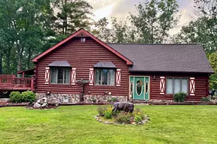 Welcome to this lovingly cared for log home on 2.57 acres featured on HGTV! As you enter through the gated private drive you are greeted with an open, yet tree lined property offering privacy and your personal oasis, but within walking distance to breweries, restaurants and all downtown has to offer. Your private oasis includes an inground pool, pool house, 18 hole mini golf, large waterfall koi ponds. Also outdoors are various outbuildings, sheds, large detached workshop garage. The home is serviced by public water, however, there is a well outback (tank replaced 2024) for pool, ponds, etc. Upon entering the home you will find cathedral ceilings in the open living, dining and kitchen area. The kitchen has been updated in 2022 with new backsplash and painted cabinets giving it a more modern log home look. Hall bath also fully renovated in 2022 with a double sink vanity, new tile shower /tub and again keeping the country charm. All bedrooms are large with lots of closet space - 2 bedrooms with walk-in closets. The spiral stairway leads to a large full bedroom, ensuite and walk-in closet. Here you will also find hidden storage in both sides of the walls. The very large downstairs is also accessed from outside where your entry has a mud room and closets. It is perfect for family time, work outs, game nights or any gatherings while enjoying the custom built log bar and wood burning stove to keep cozy in winter months. Downstairs also has an additional storage room, laundry room and full bathroom. Off the entry foyer is a large bright sun room facing the ponds and mini golf area. Too many details to list.....This is the perfect family home which can also serve a small business with all the out buildings and parking areas.