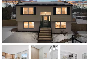 Welcome to this beautifully updated split level 3 bedroom, 1 bathroom home, offering a bright modern feel and a layout that is perfect for everyday living. From the moment you enter, you will appreciate the hardwood staircases leading both upstairs and downstairs, setting the tone for the stylish upgrades throughout. The main level features a spacious living and dining area with LVP flooring, new windows that flood the home with natural light, and modern light fixtures with recessed lighting throughout. The brand new kitchen is a true showpiece, featuring brand new cabinetry, quartz countertops, stainless steel appliances, and a dedicated coffee bar area that adds both function and charm. Large windows overlook the backyard, creating an airy and inviting space to cook, gather, and entertain. Down the hall, you will find two comfortable bedrooms, a convenient storage closet, and a brand new bathroom complete with beautiful tilework, a new vanity, and sleek modern fixtures. The lower level expands your living space with LVP flooring throughout, a large third bedroom, and a generously sized family or recreation room featuring a cozy pellet stove and sliding doors that lead right out to the yard. A separate laundry and mechanical area includes the washer, dryer, and electric water heater. Outside, enjoy a fully fenced backyard with a storage shed for added storage, perfect for tools, bikes, seasonal items, or lawn equipment. Plus, solar panels provide added electric savings, making this home as efficient as it is attractive. Move in ready, thoughtfully upgraded, and packed with features, this one is a must see.