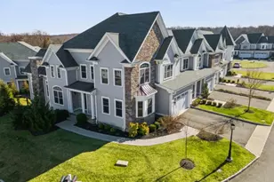 With a brilliant blend of thoughtful design and quality craftsmanship, this breathtaking 3 bedroom, 3.1 bath end-unit townhome nestled in the premier Warren Crossing development will far exceed your expectations! A striking neutral palette set against warm wood flooring, a sun drenched, open floorplan + 9 foot ceilings welcome you home to this rare Eldorado model. Viking professional appliances, large island, quartz countertops and custom pantry make this kitchen every home chef's dream! Desirable first floor primary bedroom suite with vaulted ceiling, Hunter Douglas room darkening shades and luxurious bath with soaking tub create an oasis of calm. Dramatic great room with soaring 18 foot ceiling, custom wainscoting, gas fireplace and wall of windows with sliders to private deck - the perfect spot for sunset watching! Spectacular finished walk-out lower level features large recreation room, kitchenette with sink, dishwasher and beverage refrigerator, full bath and French doors opening to versatile office/exercise room/bedroom option. Tons of storage throughout including huge unfinished storage room on second floor. Premium custom trim package, remote control blinds on first floor, Andersen transom windows and carriage-style garage door are a few of the many additional details making this unique home extra special! 'Best of both worlds' location with a tranquil setting enjoys close proximity to 150-acre East County Reserve Park yet minutes from restaurants, shopping, highways and schools. BONUS: there is a 30 year tax abatement program & a park-and-ride with express service to NYC less than 5 minutes from your front door!