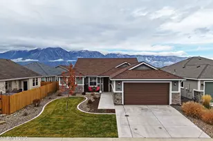 Modern Comfort with Mountain Views. Welcome to this beautifully maintained three-bedroom, two-bathroom home nestled in a private gated community. Designed with a popular open floor plan, this residence offers both style and functionality. Breathtaking views of snow-capped mountains right from your windows. Low-maintenance backyard perfect for relaxing or entertaining. Chef's kitchen with solid surface Granite countertops and premium stainless steel KitchenAid appliances. Warm wood laminate flooring throughout the main living areas. Spacious layout ideal for gatherings, family living, or quiet evenings at home. This home combines modern finishes with easy living, all within the security and serenity of a gated neighborhood. New window covering throughout. Homeowners' association is only 140 dollars a month, They maintain the front yard landscaping while you relax! The low maintenance back yard landscape was just installed. One of the largest back yards in the neighborhood with gorgeous mountain peak views.