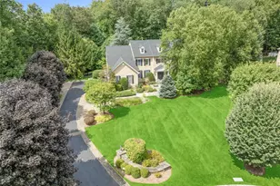 Welcome to this timeless center-hall Colonial set on beautifully landscaped grounds in the sought after Leisure Farm community. A long private driveway with brick-pillared entry and graceful curved wall leads you to this 4-bedroom, 4.1-bath classic elegant home with thoughtful design throughout. The impressive two-story foyer with coffered ceilings opens to formal dining room with tray ceiling and living room with adjoining library/sitting room featuring a builtins with marble gas fireplace. The expansive family room with wood-burning stone fireplace seamlessly connects to the breakfast room and chef's kitchen, complete with sit-down island, convenient desk area, and butler's pantry. Sliding glass doors lead to multi-level decks, bluestone patios, built-in gas barbeque and a private backyard oasis with heated freeform Gunite pool, spa and waterfall. Upstairs, the primary suite offers two walk-in custom fitted closets, a private office with custom wood built-ins, a primary bath with whirlpool tub, dual vanities, heated floors and separate shower. Two bedrooms share a Jack-and-Jill bath, while an additional ensuite bedroom features a walk-in closet and private bath. The finished walkout lower level is designed for entertaining with full size, custom wood, wet bar, 500 bottle wine cellar, full bath, and flexible guest/office space; plus plenty of room for work out area, or to watch your favorite movie or a game of billiards. Convenient walk out area to the fenced in backyard. Outdoors, lush gardens and mature trees frame a resort-style heated Gunite pool with spa and waterfall; ideal for gatherings, poolside lounging, or simply relaxing in total privacy. A 3-car garage, hardwood floors & custom molding throughout, full service laundry room, and mudroom complete this exceptional home.