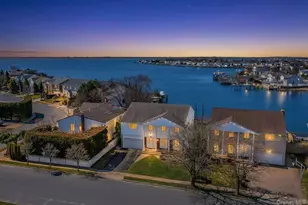 Welcome to your dream waterfront escape, where the canal gracefully opens to the bay and every day begins and ends with breathtaking beauty. Wake up to the morning sun dancing across the water and unwind in the evening with spectacular sunsets right from your own backyard. Set on an expansive .31-acre lot, this sprawling 5-bedroom, 2.5-bath colonial-one of the largest models in South Bellmore-offers an exceptional blend of space, comfort, and serene coastal living. At the heart of the home is a stunning, 3-year-young gourmet kitchen thoughtfully designed for both elegance and everyday living. Featuring white shaker full-height cabinetry, soft-close drawers, granite countertops, a classic subway tile backsplash, and a generous center island, it's the perfect gathering place. The sun-filled breakfast area, framed by a beautiful bay window, invites you to sip your morning coffee while taking in peaceful water views and watching boats drift by. Rich, recently refinished wood floors flow throughout, enhancing the home's open layout and welcoming feel. A dramatic two-story atrium sets the tone, while fresh paint makes this home truly move-in ready. The formal living room flows effortlessly into a banquet-sized dining room-ideal for hosting memorable gatherings. Just beyond, the warm and inviting family room features a wood-burning fireplace and oversized sliders that open to a spacious deck, creating a seamless indoor-outdoor lifestyle. Upstairs, five generously sized bedrooms offer space for everyone. The oversized primary suite is a peaceful retreat, complete with tranquil water views, two walk-in closets, a dressing area, and a private en-suite bath ready for your vision. An additional bedroom also enjoys lovely water views. The hall bath is well-appointed with a large vanity, separate shower, and a relaxing jacuzzi tub. Step outside to enjoy a beautifully designed stone patio, an automatic awning for shaded comfort, and in-ground sprinklers for easy maintenance. Located in desirable Flood Zone X, this home offers added peace of mind. Additional features include a full basement with crawl space, Andersen windows, sewers, 150-amp electric, a newer roof, leased solar panels, 2-zone gas heat, central air, and a newer washing machine. With deep-water access for boating and a setting that feels like a private retreat, this exceptional South Bellmore home offers a rare opportunity to experience waterfront living at its finest.