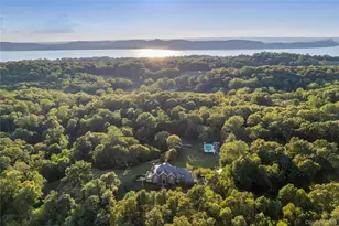 Perched high on a ridge in the heart of the Lower Hudson Valley, "Sleepy Hill" is a hilltop estate of rare beauty and seclusion. Set on more than 10 private acres, the property is introduced by an 800-foot gated driveway that winds through rolling lawns and mature trees before revealing a stately brick Colonial residence. From its commanding position, the estate captures panoramic vistas of the surrounding hills and, on the clearest days, the glittering Manhattan skyline. The home offers over 9,000 square feet of finely finished living space across three levels. With six bedrooms, six bathrooms, and five fireplaces, it is designed for both relaxed daily living and elegant entertaining. At its heart, the dramatic great room adjoins the kitchen and is distinguished by a soaring two-story barrel ceiling and a striking natural stone fireplace. The garden level is dedicated to leisure and recreation, featuring a built-in bar, gym, and entertainment spaces that open directly to a covered terrace. Just above, a spectacular 100-foot main terrace commands sweeping views of the pool and tennis complex, the hills beyond, and the distant skyline. Outdoor amenities include a pool and pool house, a carriage house with studio and half bath, and a regulation tennis court. Conveniently located just minutes from village shops, dining, and the Scarborough and Tarrytown Metro North station, adjacent to the horse trails of the Rockefeller State Park, and a mile from the prestigious and Top 100 golf club, Sleepy Hollow Country Club. "Sleepy Hill" offers the perfect balance of privacy and accessibility ~ all this within the Pocantico Hills School District.