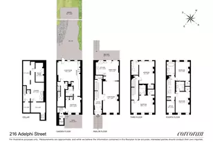 Welcome to 216 Adelphi Street, a beautifully restored four-story brownstone located in the heart of Fort Greene. This thoughtfully renovated home offers a seamless blend of historic charm and modern luxury, with original architectural details, a designer kitchen and bathrooms, and an impeccably landscaped garden. Measuring 20 feet wide and 45 feet deep, the home offers exceptional proportions and a layout designed for both comfort and style. The parlor floor is especially impressive, with floor-to-ceiling windows overlooking Adelphi Street, restored original floors and moldings, and a powder room. The rear of the parlor is home to a stunning open kitchen and dining room, featuring custom sunflower yellow cabinetry, sleek black countertops, open shelving, and a built-in upholstered banquette. Appliances include a vented six-burner Smeg range, vintage-inspired Smeg refrigerator, and a Miele dishwasher. French doors lead to a spacious deck with stairs down to a beautifully landscaped garden complete with new cedar fencing, irrigated planting beds, and a large patio. On the third floor, you'll find two spacious bedrooms, each with custom closets and beautifully designed en-suite baths. The top floor includes two additional large bedrooms, two full bathrooms, and a versatile bonus room ideal for a nursery or home office. The garden level functions as a flexible one-bedroom apartment, perfect for guests or rental income, with a large living and kitchen area featuring walnut countertops, stainless steel appliances, built-in bookshelves, and access to the garden. The finished basement adds even more usable space with a newly poured concrete floor, laundry center, and home gym area. Additional upgrades include all new windows, new brownstone facade, new mechanicals, new electrical, and a dedicated AV closet connecting indoor and outdoor built-in speakers. 216 Adelphi Street is two short blocks to Ft Greene Park, and moments from adored restaurants Evelina, Colonia Verde, Sailor, Saraghina Caffe and so many others.