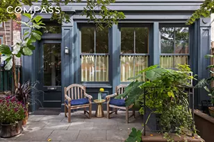 A special opportunity, an owner's home with lush private garden, plus rental income, in Carroll Gardens. Through the planted front garden at 417 Union Street, a notable feature of this namesake neighborhood, you'll enter the owner's unit spanning two floors, a finished basement, and a deep, verdant garden with a huge, fruit bearing fig tree. Tend to your own garden and enjoy backyard dining. The first floor provides a spacious foyer, living room, kitchen and dining as well as a half bath, and is flooded with light through the wall of windows and doors leading out to the garden. Ceiling height of 10'2" enhance the spacious feel of this level and is an inviting layout for entertaining. Up one flight with tree top views are 2 bedrooms plus a home office, 1 full bath and a laundry room. The finished basement currently serves as the owners' artist studio and provides a second access to the garden. History enthusiasts will love the hidden brick bread oven, which at one time served the community with neighbors bringing their bread to bake here. (A new chimney would be required in order to function, but as is, serves as a lovely reminder of Brooklyn's past.) The top floor of the home provides a floor-through 1.5 bedroom, 1 bath apartment. The tenants are currently utilizing it as 1 bedroom, 2 offices, with living/dining room and windowed kitchen. This 20 ft wide home will be delivered vacant. Total Square Footage: 4,374 SF Usable Square Footage including finished basement: 3,168 SF interior + 1,206 SFoutdoor space Ceiling Heights: Garden - 10'2" Second -9'5" Third - 9' Basement - 7' 417 Union is an inviting home that can be customized to your lifestyle in a neighborhood with deep appreciation of the history and community of Carroll Gardens. Local beloved institutions include Caputo's, Montelone, Brooklyn Social, Cobble Hill Cinemas and is 3 blocks from the Carroll F&G trains.