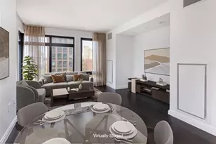Available Immediately! Bright corner 2 bedroom home at Baltic Park Slope. A gracious entry foyer invites you in and leads to an over-sized corner living/dining room where you will enjoy sunlight all day and evening sunsets from South and West exposures. The contemporary kitchen features rich tones with custom walnut cabinetry with plenty of under counter storage and pantry. The Miele appliance suite includes an electric oven, 4 burner gas stove top, fridge freezer with built in ice maker, dishwasher and speed oven. The primary bedroom enjoys a luxurious 4 fixture bath, a glass enclosed steam shower with Waterworks fixtures and 4 body jets, and radiant heated marble floors. The dark walnut vanity is topped with a Zeus marble countertop that is continued along an accent wall and storage abounds in your full height built in mirrored medicine cabinet. A large built out walk in closet completes this gracious suite. The large west facing second bedroom also has a built out closet. The apartment comes equipped with a Bosch washer/dryer and smart home technology through a Nest thermostat. Located in Park Slope and only 5 blocks to the Barclays Center transportation hub, 613 Baltic Street has a 24hr attended lobby, and residents can enjoy the 2nd floor gym and lounge, along with the fully landscaped roof featuring two outdoor kitchens and grills, and an outdoor TV lounge area.