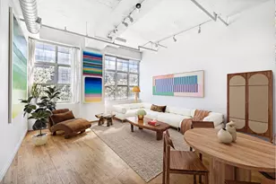 Seller offering a $5,000 credit at closing for contracts signed at full ask! Originally built in 1947 and thoughtfully converted into condominiums in 2003, this distinctive factory conversion blends historic charm with modern loft living. Spanning approximately 1,000 square feet, Residence 2E is a true artist's loft. As you step inside, you're immediately struck by the dramatic scale of the space-soaring nearly 13-foot ceilings and an expansive 20" x 20" open living and dining area create an inspiring and airy atmosphere. Floor-to-ceiling, south-facing windows flood the home with natural light and offer vibrant views of Myrtle Avenue, while wide-plank hardwood floors flow seamlessly throughout, adding warmth and character. At the heart of the home lies a generously sized chef's kitchen, perfectly positioned between the living space and lofted bedroom. It offers ample cabinetry, abundant counter space, and the ideal layout for entertaining or everyday cooking. The lofted sleeping area is quintessential Brooklyn-distinctive, spacious, and full of personality. It comfortably fits a king-sized bed and includes plentiful storage, further enhancing the home's functionality and charm. The Chocolate Factory introduced Brooklyn's first green roof-a unique 5000 sqft. tranquil garden space with panoramic views of Manhattan and Brooklyn plus a rooftop atrium gym. There's 24/7 video security and high-speed Verizon Fios internet included in the building's common charges. Wifi is also available to all residents on the roof if you prefer to work outside. The building is surrounded by many neighborhood favorites including Brooklyn Kolache, Rustik Tavern, Speedy Romeo, Peaches, Sally's, The Swan, Stonefruit, and many more. Transportation is available at the G at Myrtle-Willoughby.