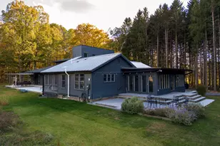 Welcome to this exquisite mid-century modern residence, perfectly situated in an ideal location that harmoniously balances wooded and cleared land. This home offers a unique blend of privacy and accessibility, making it a true sanctuary for those seeking tranquility and natural beauty. Step outside to discover your own private swimmable pond, where you can enjoy leisurely afternoons, or unwind in the hot tub under the stars. The property features an enchanting orchard and multiple outdoor entertaining areas, including a cozy fire pit and a charming screened porch, perfect for gatherings with family and friends. Inside, you will be captivated by the impressive architecture and abundant natural light that fills the space. The large primary suite boasts an en-suite bathroom, while two additional bedrooms each feature attached bathrooms, providing comfort and privacy for all. Custom features throughout the home enhance its unique character and charm. The expansive living room, complete with a La Castallamonte wood-burning stove, creates a warm and inviting atmosphere, overlooking the lush lawn and serene pond. A gallery hall leads you through the home, showcasing its thoughtful design and craftsmanship. For those with a passion for woodworking or creative projects, the heated woodworker's shop offers a dedicated space to bring your ideas to life. With multiple entries, this home ensures guest privacy while also facilitating efficient day-to-day living. This property truly has so much to offer and enjoy, making it an exceptional opportunity for anyone looking to embrace a lifestyle of comfort, creativity, and connection with nature. Make this mid-century modern gem your own! *Please see listing #152368 for additional parcel of land that borders this property with access to Upper Rhoda Pond