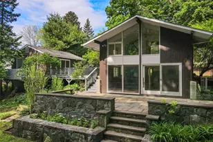 Trendy Mid-Century Modern style home with 400Sq Ft Bonus Studio in the desirable Village of Croton-On-Hudson. Charming 1,950s main house 3bedroom + home office, 2bath home with floor to ceiling windows, exposed brick accents, two fireplaces and vaulted ceiling in all bedrooms. Move right in with refinished wide-plank hardwood flooring, recently updated bathrooms with upgraded pluming and on-trend porcelain tiles, clawfoot bathtub and shower stall with glass shower door. Vintage Mid Century Entry door and lofted entry foyer. 2015 Renovated Kitchen with stone counters and seating peninsula. Enjoy ultimate flexibility of work-from-home and indoor-outdoor living with a bonus 400 Sq Ft studio just steps from main house front door. Fully set up for movie nights or entertaining and boasting oversized windows and glass sliding doors, heatpump HVAC and private deck. Large back yard bluestone patio just off the livingroom flows to tiered stone walls and a level back yard and raised garden beds. Back yard access to woodsy town land with a stream and walking paths. In-Village and walk to town yet enjoy privacy, nature, woods all around all while on a quiet tree-lined street that dead-ends at Jane Lyttle Arboretum and Kaplans Pond. Croton Harmon Schools and Minutes to Croton Harmon MTA Train Station with Plentiful Parking and Sub 1 Hour Express Trains to Grand Central Station.
