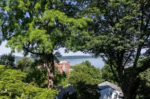 Outstanding year-round Hudson River views await in this unique and newly-renovated 2-bedroom 2-bath condominium just two blocks from downtown Dobbs Ferry. This condominium is located in Genehurst, an 1894 mansion the Dobbs Ferry Historic Society designated a Village Historic Home. Original wood moldings, stained glass windows, and lustrous panel details in the entry have been restored to their turn-of-the-century magnificence. Unit #7 has been beautifully updated and completely modernized to create this brand-new, and one-of-kind living experience! Entering will take your breath away: a feature picture window in a gracious living room overlooks the dazzling expanse of the Hudson River by day and the magnificent glowing sunset at dusk. This is the focal point that highlights the room's lofty gabled ceiling with wood beams and expansive new oak floors. The open concept plan draws your eye to a magnificent circular dining room, where river views north and west toward the Tappan Zee Bridge are made even more extraordinary through a series of original and refurbished curved-glass double-hung windows. An eat-in island kitchen enjoys all the light and views from the dining room, with the added charm of an eyebrow window to the western sky. Here, quartz counters, stainless appliances, sizeable island, and stainless sink (with its own exceptional view) contribute to making meal prep an absolute pleasure. An astonishing octagonal primary bedroom lets southern and western light stream in while presenting its Palisades panorama. Marble tile is featured in its ensuite bath with marble walk-in shower. The generous second bedroom is lofty in feel and has a gorgeous vista to the north. Plenty of storage areas are included both in the unit and in the basement of the building. Leave your car behind and enjoy the fantastic location: one block from the Old Croton Aqueduct trail, two blocks from the vibrant Village downtown, and three blocks from Waterfront Park and the MetroNorth train, running along the Hudson to NYC. With award-winning schools and the lure of all the Rivertowns' offerings, this condominium is hard to beat.