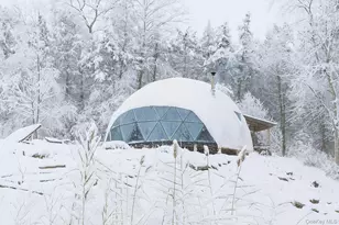 The Geosphere is a convergence of visionary design, tactical investment and natural sanctuary. Set on 7.18 secluded acres in the heart of Dover Plains, this fully legal, architect-designed geodesic residence and studio building give you something unmistakably distinctive: a home that feels like art, and a property that can perform like an asset. Inside, the striking residence is fully winterized, featuring commanding glass and skylights, a custom-crafted interior and a cozy wood stove that makes efficiency luxurious. The main geodesic dome is complemented by a studio seamlessly integrated into the landscape - perfect for an art studio, office, or workspace. The infrastructure is robust: on-grid power with off-grid capability, a dedicated well and full septic system. A spring-fed natural swimming pond, aerated and stocked with fish, doubles as a functional fire-safety reservoir (an insurance-advantage you rarely see). A new half-mile gravel driveway ensures privacy and serenity from the main road. Zoned and fully permitted as a short-term rental through Dutchess County, The Geosphere Retreat is income-ready if that is what you seek. Comparable homes in the region are generating $1,000-$2,000 per week. With further subdivision potential (2-acre minimum lots), and agricultural tax incentives available, this isn't just a home - it's a platform for both current income potential-and future upside. Positioned in Dover, NY, two hours from New York City, in an area where growth is quietly gathering pace, including nearby Silo Ridge, and One&Only in development, complete with commuter-link access via Metro-North's Harlem Line. The Geosphere awaits to deliver a statement, a sanctuary, and a truly unique value proposition.