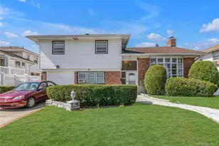 Beautiful split ranch home located on a quiet cul-de-sac in the heart of East Meadow. Renovated in 2012, this home offers four spacious bedrooms and three full bathrooms, providing ample living space. Situated on a 6,200 sq ft lot, it features 2,370 sq ft of interior living area. The custom kitchen includes granite countertops and gas cooking. Hardwood floors extend throughout the home, which also includes a full rear extension. The expanded primary suite offers a sitting area and a private terrace. The backyard features a marble patio and granite walkway, ideal for outdoor entertaining and relaxation. Additional highlights include large bedrooms and a dual staircase that adds architectural interest.