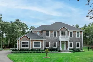 Welcome to 6 Clara Drive - a modern Hamptons retreat that perfectly blends luxury, privacy, and nature. Completed in 2023, this exceptional new construction sits on 3.79 acres of beautifully wooded land at the end of a quiet cul-de-sac in the coveted Southampton Pines development in East Quogue. Designed for comfort, functionality, and timeless appeal, the home offers 5 spacious bedrooms, 4.5 bathrooms, and the rare combination of modern craftsmanship and serene surroundings. From the moment you arrive, the home's setting immediately impresses - tucked away and bordered by lush trees, it provides a true sense of seclusion and peace. The approach opens to a beautifully designed residence with a stately yet understated presence, complemented by extensive decking, manicured grounds, and thoughtfully integrated outdoor spaces that make the most of the property's natural landscape. Step inside to discover a bright, airy interior where high ceilings and expansive windows fill each room with natural light. The open-concept living area is anchored by a wood-burning fireplace, creating a warm and inviting focal point for gatherings in every season. The kitchen, dining, and living spaces flow seamlessly to the outdoors, with access to the deck and pool area. The kitchen features modern finishes, Café appliances, and ample counter space for both casual meals and larger gatherings. Just beyond, the elegant dining area offers a cozy atmosphere for joyful meals. The main floor includes a Junior Primary Bedroom with an en suite bathroom, offering versatility for today's lifestyle needs. The junior primary bathroom features a double vanity and double shower-heads, meticulously designed for comfort and elegance. Upstairs, the primary suite offers a luxurious private escape, complete with a spacious ensuite bath and serene wooded views. The primary bathroom is complete with two vanities, a soaking tub, double shower heads and intricate tile work. The guest bedroom on this floor is complete with a private bathroom. The Jack and Jill rooms are generously sized, with plenty of light and storage, accommodating both family and guests comfortably. The Jack and Jill bathroom is complete with a double vanity and a separate space for the bathtub. Throughout the home, thoughtful design elements and high-quality materials reflect craftsmanship and attention to detail. The full basement provides abundant potential for expansion, ready to be finished for additional living space such as a gym, media room, or recreation area. The systems are state-of-the-art, including central air, an on-demand boiler, and underground utilities to preserve the community's uncluttered, scenic character. Outside, the property shines as an entertainer's paradise. A heated saltwater in-ground pool serves as the centerpiece of the backyard, surrounded by an expansive deck ideal for lounging or dining al fresco. The fire pit area adds another layer of year-round enjoyment, perfect for cozy evenings under the stars. Whether swimming, entertaining, or simply enjoying the stillness of nature, the outdoor spaces invite you to unwind and stay awhile. Located within the East Quogue School District, this property offers the rare combination of rural tranquility and easy access to everything the Hamptons are known for - world-class beaches, golf courses, fine dining, and boutique shopping. East Quogue village charm is just minutes away, home to local favorites such as Goldberg's Bagels, while nearby Westhampton, Southampton, and Hampton Bays expand your options for entertainment, restaurants, and coastal recreation. At 6 Clara Drive, every element - from the peaceful wooded backdrop to the thoughtful modern finishes - was designed to create an effortless balance between luxury and lifestyle. With its secluded setting, high-end amenities, and proximity to all the Hamptons has to offer, this is more than a home - it's a retreat built for generations to enjoy.