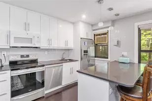 This fully renovated 1-bedroom, 1-bath co-op at 16 Stoner Avenue combines contemporary style with practical living. The open layout features wide-plank, dark-stained hardwood floors throughout the living, dining, and balcony-access areas, creating a cohesive and warm atmosphere. The kitchen boasts sleek white lacquer cabinets, quartz countertops, and stainless-steel appliances, all illuminated by recessed lighting. In the bathroom, a marble-tiled shower, polished fixtures, and subtle accent lighting create a calming, spa-like experience. With generous room dimensions and a flexible floor plan, you can configure the space to suit your needs-whether hosting guests, setting up a home office, or enjoying a movie night. The living area's direct access to a private balcony adds an extra dimension for tranquil relaxation, offering a place for morning coffee or evening unwinding. Building amenities enhance everyday convenience: a newly updated laundry room, secure video-intercom entry, recently novated hallways, and optional indoor parking. Located closed to shopping, dining, and transportation options in Great Neck Plaza, this residence offers both urban convenience and refined design. Perfect place to call home! Love where you live!