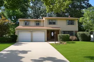 Welcome to this spacious 4 bedroom, 2.5 bath colonial located in the desirable Hauppauge School District. Offering approximately 2,300 square feet of living space, this home features a formal living room, formal dining room, and an eat in kitchen equipped with gas cooking and stainless refrigerator. The family room provides a comfortable space for everyday living, and hardwood and vinyl flooring run throughout the home. The primary bedroom includes an en-suite bathroom and 2 walk-in closets, adding comfort and convenience. Additional highlights include a full, unfinished basement, a full attic, and a 2-car attached garage. The home is equipped with central air conditioning (1 zone), a Weil-McLain natural gas heating system with 2-zone baseboard heat, a separate water heater, and a 200-amp electric service. Outdoor features include a rear deck perfect for relaxing or entertaining, and a cesspool (recently serviced) with an overflow system. The roof is approximately 15 years old. This is a fantastic opportunity to own a well maintained & versatile home in a great location close to schools, parks, and amenities.