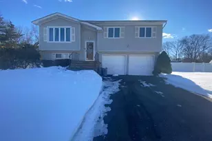 Welcome to this beautifully maintained High Ranch set on a generous lot in a desirable Hauppauge neighborhood, offering both space and an unbeatable location! This 4-bedroom home features a bright Living Room and formal Dining Room with soaring cathedral ceilings, creating an open and inviting atmosphere. The Eat-In Kitchen is equipped with white cabinetry and Corian countertops, perfect for everyday living and entertaining. Newly refreshed hardwood floors run throughout the home, adding warmth and style. The lower level offers a spacious Family Room with a charming brick wood-burning fireplace, ideal for cozy gatherings,and Guest Quarters. Two full bathrooms provide comfort and convenience for all. Additional highlights include guest quarters, a separate hot water heater, and a 2-car attached garage. Step outside to enjoy a rear deck and patio overlooking a large backyard-perfect for outdoor entertaining or relaxation. The home also boasts a brand-new driveway with Belgium block curbing, enhancing both curb appeal and functionality. Conveniently located near major highways, parks, stores, schools, and the Hauppauge Industrial Park, this home offers both comfort and accessibility. A wonderful opportunity to own a spacious home with a great layout, excellent condition, and a prime neighborhood location-don't miss this one!