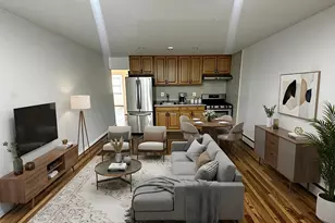 Updated first-floor rental unit located in West Hempstead, bordering Garden City. This residence features four bedrooms and one full bathroom. The interior includes a renovated kitchen equipped with wood cabinetry and stainless steel appliances, including a double-door refrigerator, gas range, and built-in microwave. Hardwood flooring is present throughout the living area and all bedrooms. The bathroom is modernized with contemporary tiling and updated fixtures. Large windows and recessed lighting provide ample natural and overhead light. These images have been virtually staged to enhance prospective.