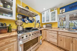 Welcome to 52 Martins Road, Huguenot, NY - a truly unique retreat designed to inspire. Originally built as a luxury writer's retreat, this thoughtfully crafted home blends modern design, artistic intention, and peaceful woodland surroundings. Each space was curated to spark creativity while offering comfort and functionality. The home features two distinctive bedrooms with vaulted ceilings and loft spaces, ideal for sleeping, writing, or studio use. A heated bathroom with a deep soaking tub connects the bedrooms, creating a spa-like experience tucked into nature. The modern kitchen is both beautiful and functional, featuring raw butcher-block countertops, sleek white glass cabinetry, a large propane gas range with exterior venting, a full-size refrigerator, and a separate beverage/wine fridge. Large windows frame serene woodland views, making every meal feel like a retreat. The living area is anchored by a high-end German wood stove, providing warmth and ambiance on cooler evenings. From here, access a mechanical/laundry room with whole-house heating and water filtration, a stunning heated tiled bathroom with French-inspired design, LED accent lighting, hydro-powered LED shower system, and heated toilet seat, and a spacious screened-in porch-perfect for summer dining, relaxing bug-free, or easily convertible to year-round living space. The exterior showcases a Japanese-inspired stucco finish selected for durability and longevity. A reinforced concrete slab foundation and cinder-block construction help regulate temperature year-round. The home is serviced by an 180-ft private well drawing from the pristine Delaware Watershed. Set on 4.7 private acres, surrounded by forest with access to nearby reservoirs and trails, the property also offers expansion potential, including a partially built garage/carport that could be completed and connected to the home. A rare opportunity to own a private, creative sanctuary in the mountains.