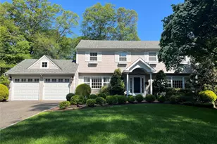 Beautiful private lot and location in Huntington SD 3. This expanded 4 bedroom/2.5 bath colonial sits at the end of the cul-de-sac on a meticulously maintained and professionally landscaped 1 acre lot that provides the ultimate in privacy and natural beauty. The traditional colonial layout with an elegant foyer has been expanded twice to include a possible 1st floor Primary Bedroom or Home Office with a separate exterior entrance, an enlarged family room with floor-to-ceiling windows that offer panoramic views of the backyard, and a 1st floor laundry room. The finished basement with above-ground windows and a separate entrance was completely renovated in 2022-23. Recent updates include: new cesspool (3 yrs), main floor addition of Home Office/Den or 1st floor bedroom, front portico, garage dormer, laundry room (2012-13), architectural roof (8 yrs) and finished basement (2022-23). The eat-in-kitchen which opens to the family room is equipped with Sub-Zero refrigerator, stainless steel appliances, and custom-built Omega Oak Cabinetry. All this in very close proximity to Huntington Village, CSH or Huntington train stations, major expressways and major shopping centers.
